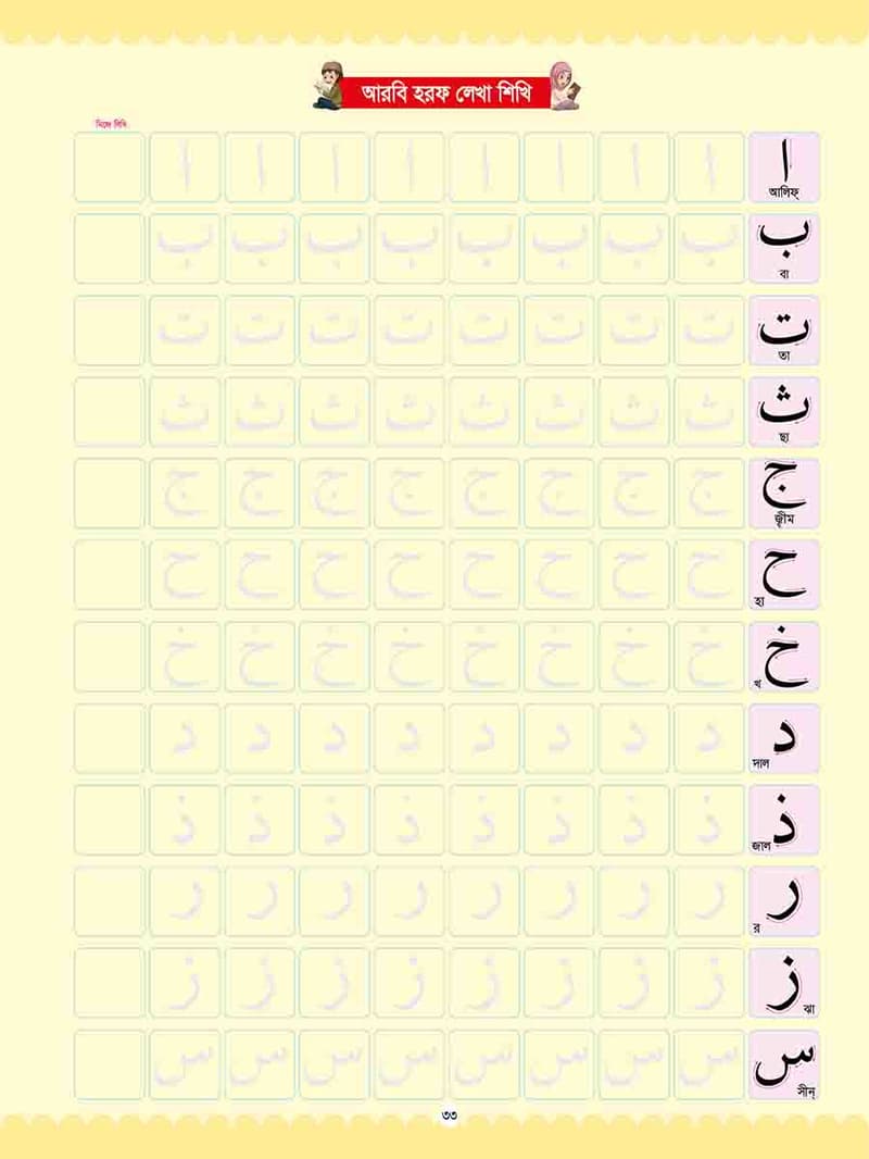 ✍️ এই বইয়ের প্রতিটি অক্ষর খোদাই করা তাই খুব সহজেই সোনামণিরা অক্ষরগুলোর উপর হাত ঘুরিয়ে কারো সাহায্য ছাড়াই লিখতে পারবে।